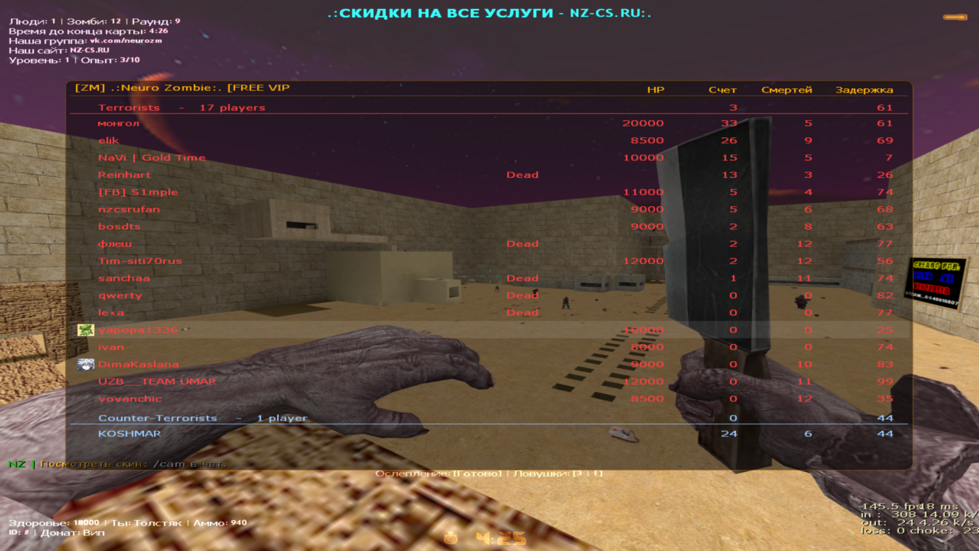 Сервер: [ZM] .:Neuro Zombie:. [FREE VIP+ADMIN]