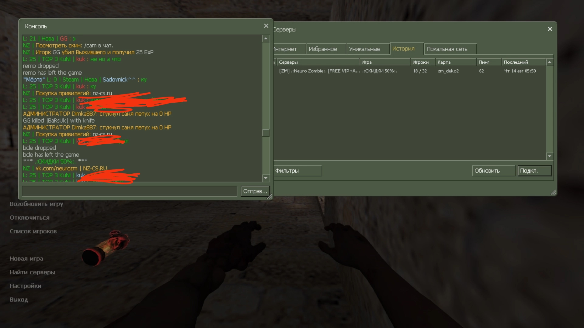 Сервер: [ZM] .:Neuro Zombie:. [FREE VIP+ADMIN]